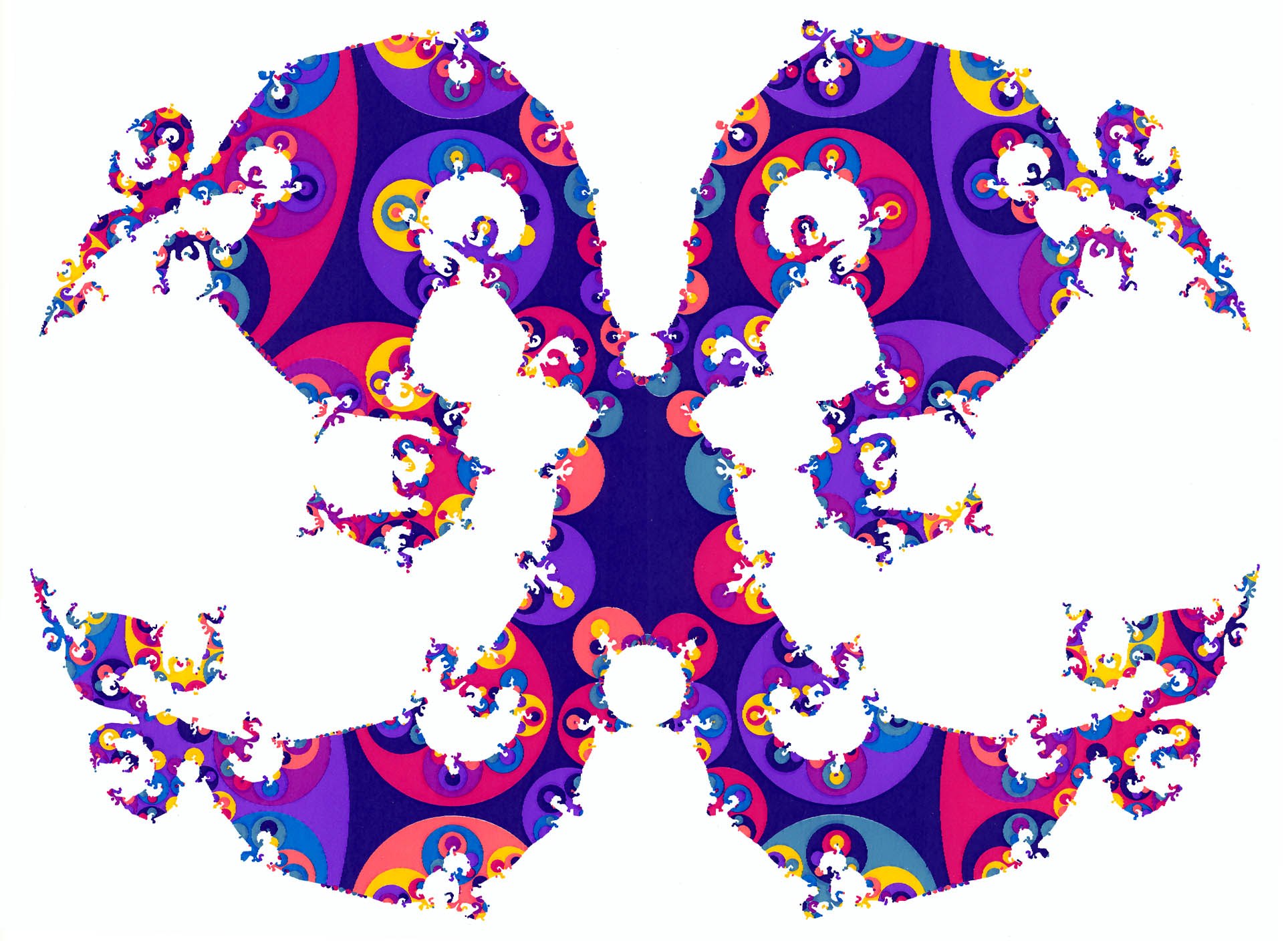Fig. 1: Tiling induced on the sphere at infinity of the Poincaré ball by the universal cover of the manifold. The quasi self-similar Jordan curve determines the bounded trajectories, and its Hausdorff measure the corresponding chaotic wave fields. g(S) = 19, δ = 1.382. full size image